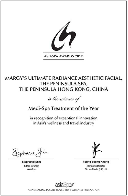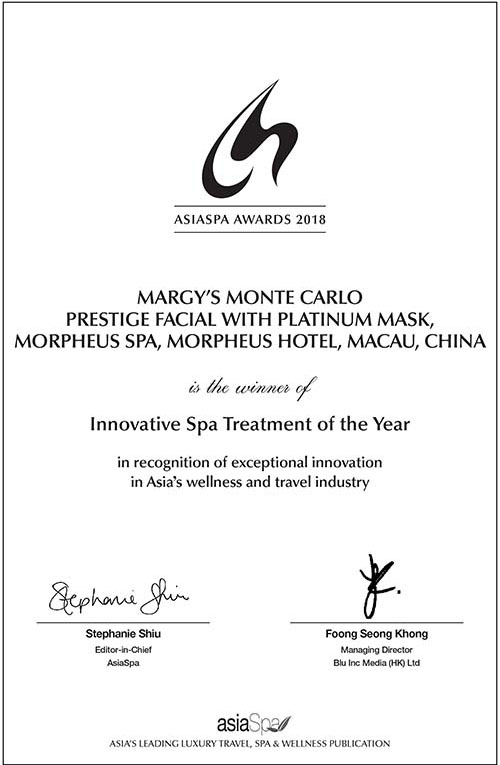 Margy’s Monte Carlo Prestige Facial with Platinum MaskAsiaSpa Awards – Innovative Spa Treatment of the Year, 2018