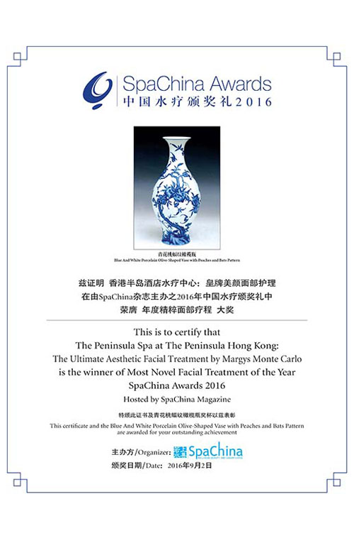 Margy’s Monte Carlo Ultimate Radiance Aesthetic FacialSpa China Awards – Most Novel Facial of the Year, 2016